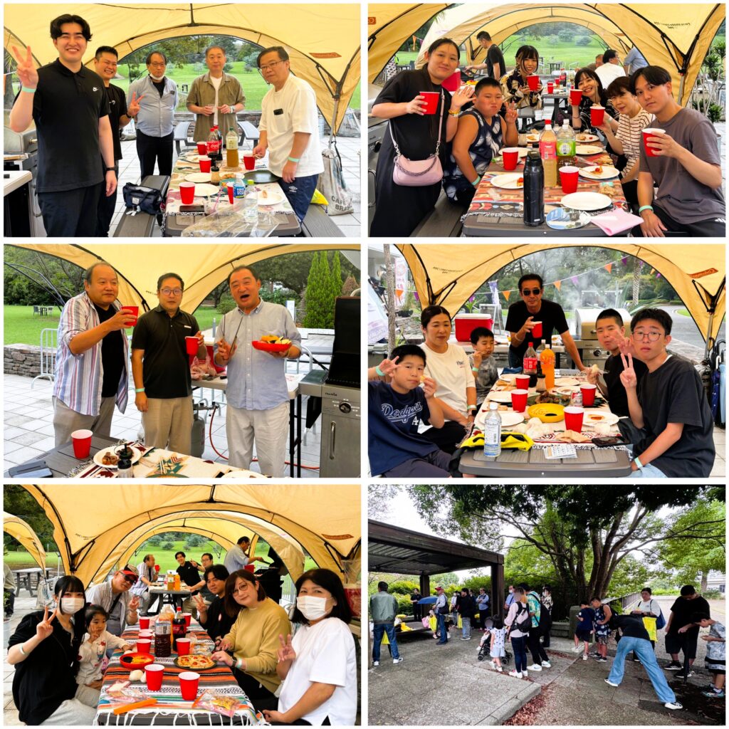 午後のBBQ懇親会では雨も上がり、美味しい食事と楽しい会話で和やかな時間を過ごしました。各拠点の社員とご家族の親睦が深まり、社内の一体感がさらに強まった1日となりました。