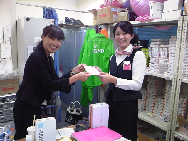 写真は、そのご報告をau多摩支店の方からいただいた時のものです♪お名前は残念ながら伏せさせていただきますが、多摩支店代表として、後日開催される「au CS AWARDS 2010 東京大会」でグランプリを目指します!みんなで応援しましょう〜!!! |