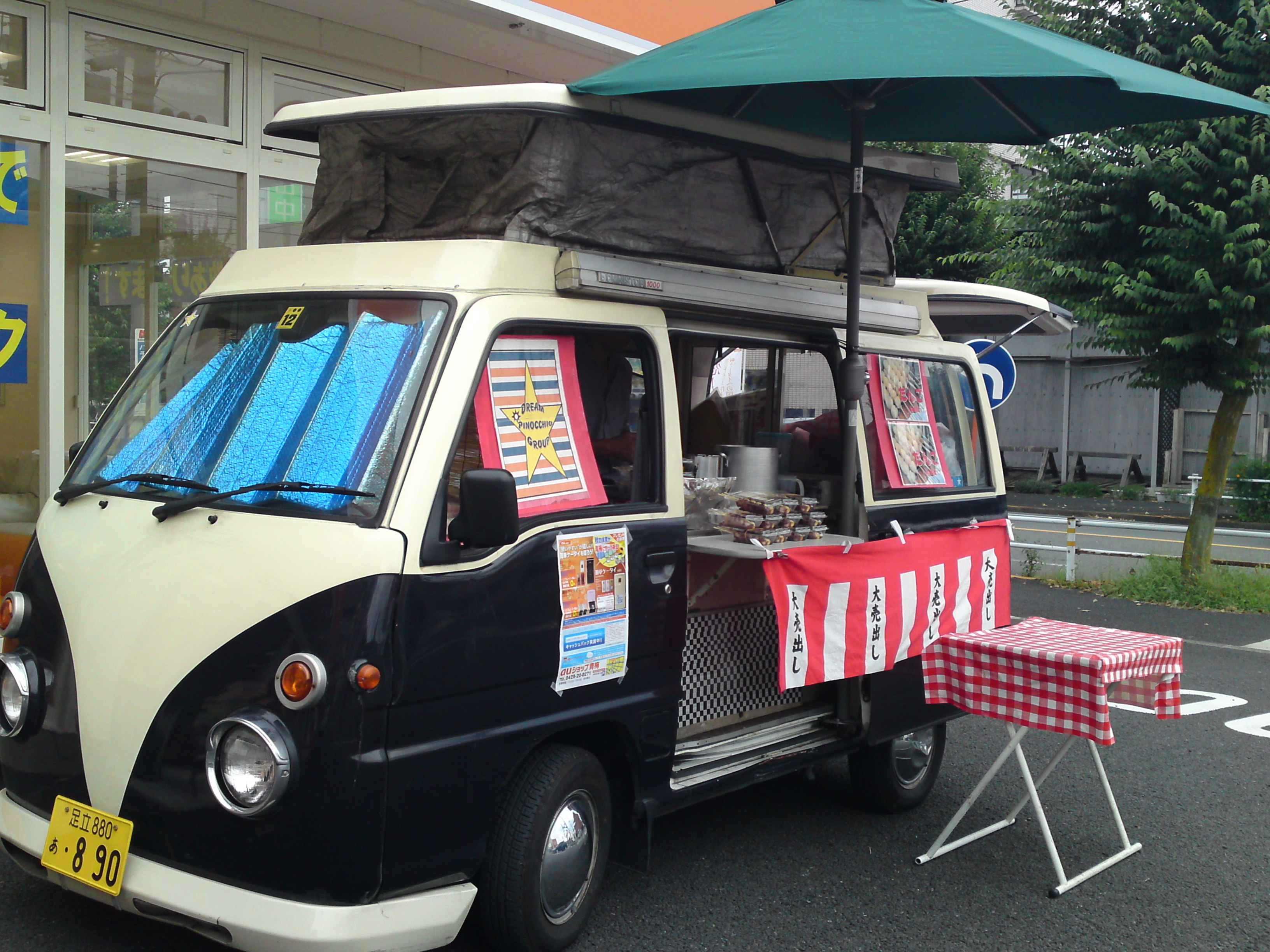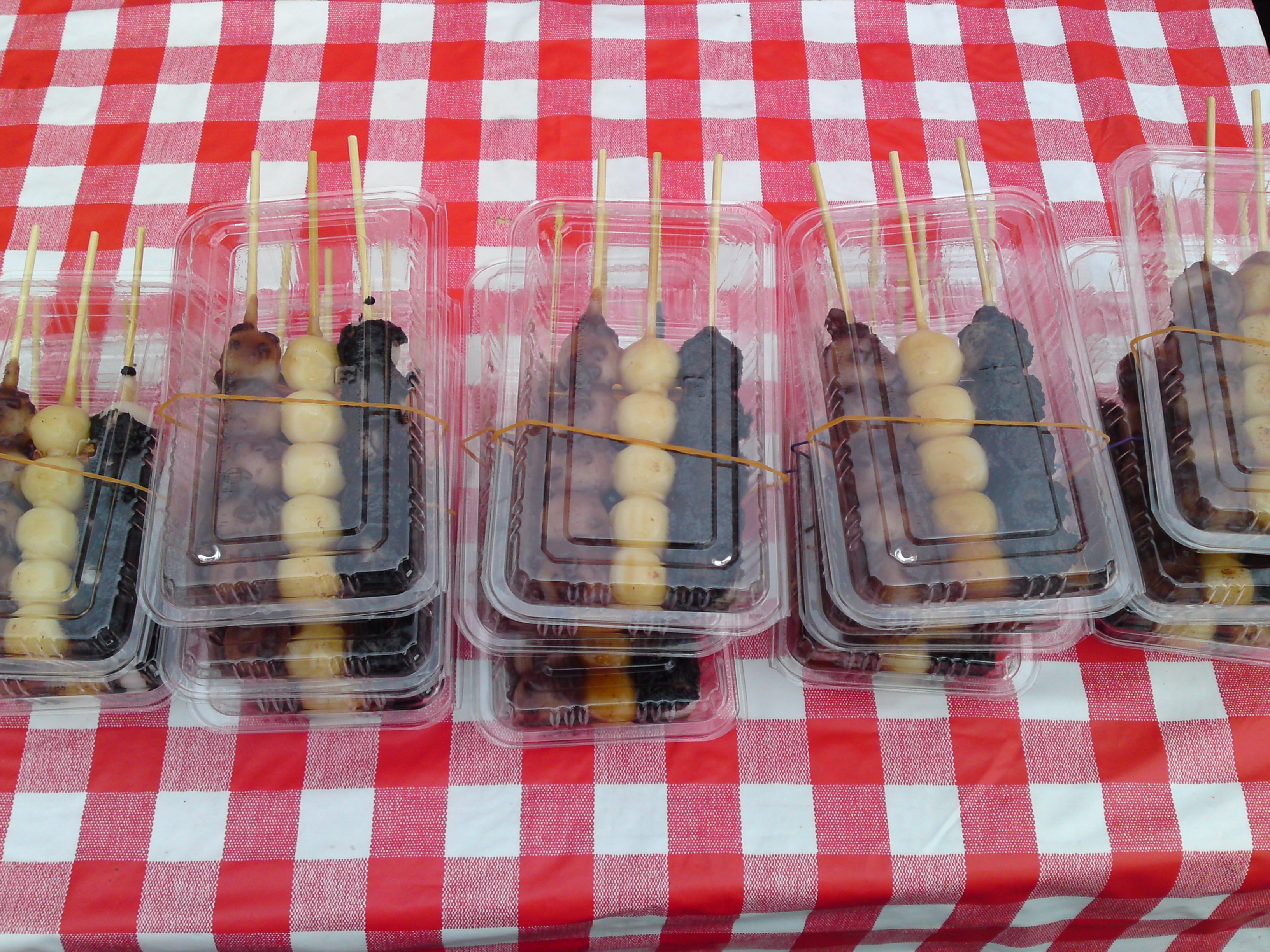 今回無料プレゼントされたのは、和の甘味の人気モノ「おだんご」です☆しかも、団子が5個も刺さった串が3本も入っていて無料なんて・・・いつもながら太っ腹!!あんこにみたらし、ごまだれ―どれも美味しそうです〜♪ところで、イベントの度にいつも感心するのですが、いろんな移動販売の車を見てきたわけですが、どの車も狭いながら(大きなお世話?!)良く出来てる!!今回の車なんて特に、カワイイうえに屋根が稼働式でパラソルまで設置OK。すごい〜★☆★
