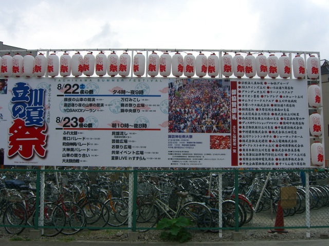 祭りまでまだ数日ありますが、ひとあし早く柴崎町3丁目の交差点の一角に、祭りの宣伝となる大きな看板が立てられています。そこには、沢山の協賛企業の名前が掲載されているのですが・・・もちろん!山三電機の名前も載っています!!山三電機が立川へ根をおろして丸3年。少しずつながら、立川の街のお役にたててるのではないかと、少し嬉しく思う今日この頃です。