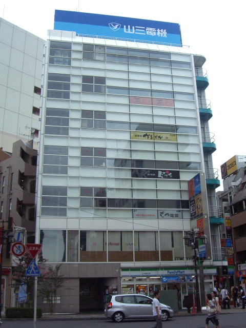 同じく梅雨明けを待っていたのが、本社ビルである『山三電機ビル』です。あいにくのお天気になってしまった昨日、梅雨のお天気で延期になっていたビル外壁の清掃が行われました。