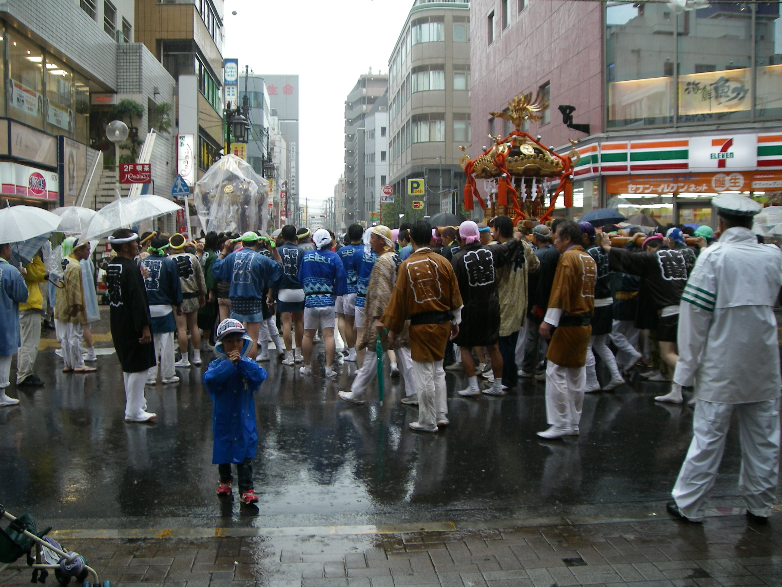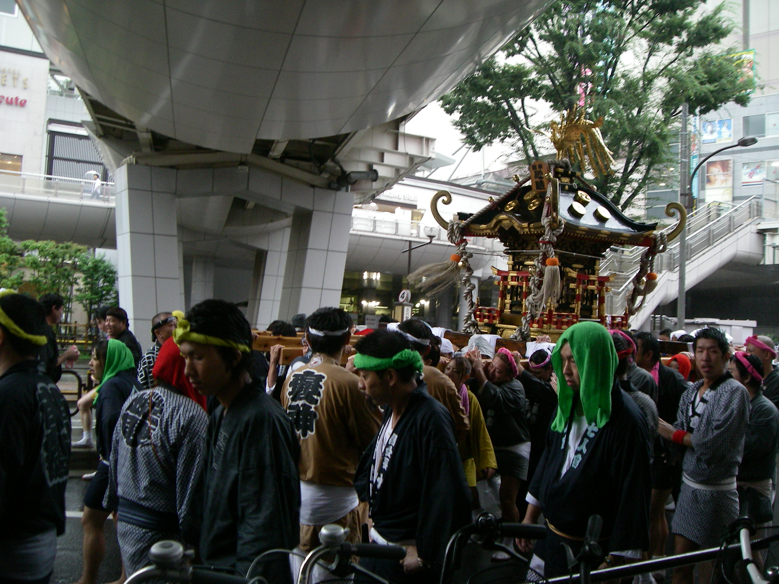 当日は残念ながら雨が降り、一足早い秋の訪れを感じるような肌寒い一日となってしまいました。それでも、お神輿を担ぐ可愛いちびっ子達がお昼頃から見られ、本番の夕刻となると、お揃いのハッピや浴衣を着た沢山の人達がこの本社ビルの周りを練り歩く姿が見られ、大変な賑わいでした。普段とはまったく違う、本社ビル周辺の夏のひとコマでした。